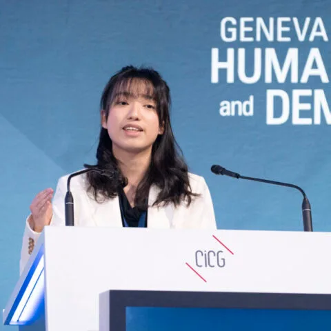 Frances Hui, first Hong Kong activist granted political asylum in the US and Director of ‘We the Hong Kongers’ organization, addresses the 15th Annual Geneva Summit for Human Rights and Democracy – see below for her remarks.